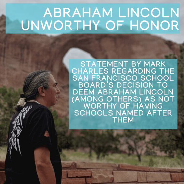 Statement by Mark Charles regarding the San Francisco School Board’s decision to deem Abraham Lincoln (among others) as not worthy of having schools named after them.